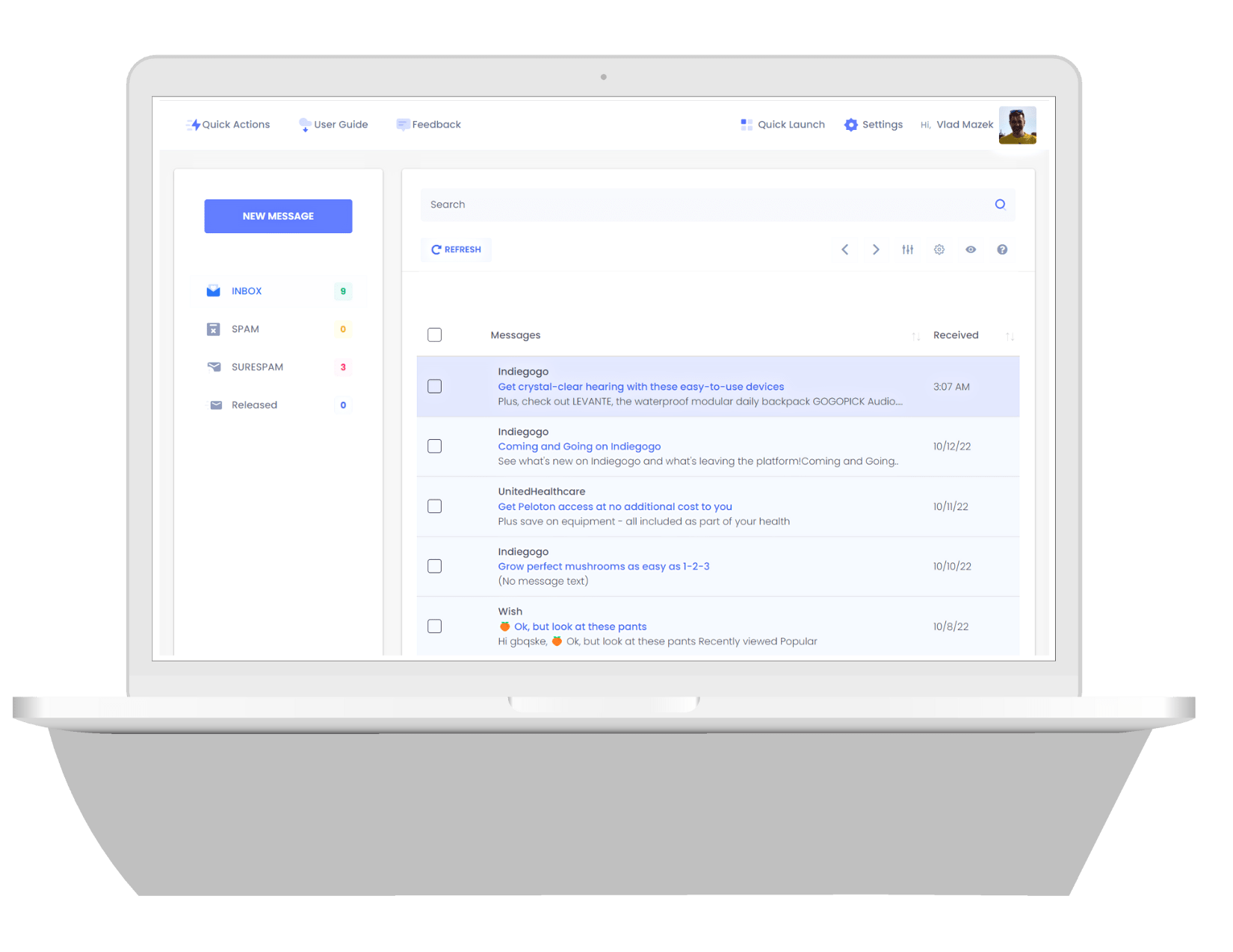 Our powerful multi-layered Spam filtering and threat protection service blocks over 99.9% of SPAM in your inbox.